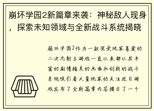 崩坏学园2新篇章来袭:神秘敌人现身,探索未知领域与全新战斗系统揭晓