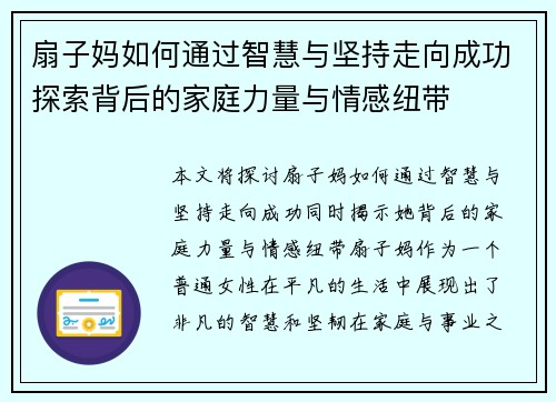 扇子妈如何通过智慧与坚持走向成功探索背后的家庭力量与情感纽带