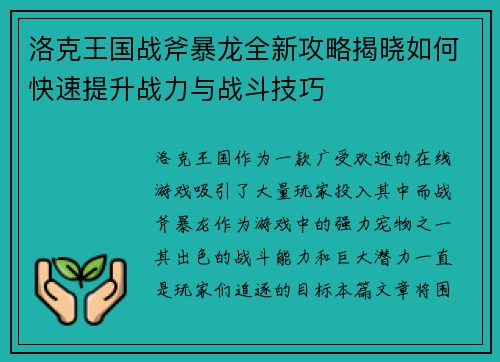 洛克王国战斧暴龙全新攻略揭晓如何快速提升战力与战斗技巧